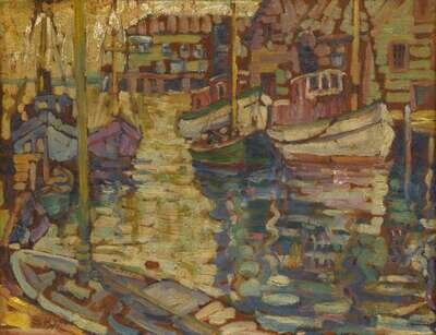 SUSETTE SCHULTZ (MORTON) KEAST (AMERICAN 1892-1932) "BOATS IN A HARBOR"