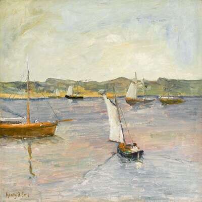 HENRY BAYLEY SNELL (AMERICAN 1858-1943) SAILING BOATS OFF COAST