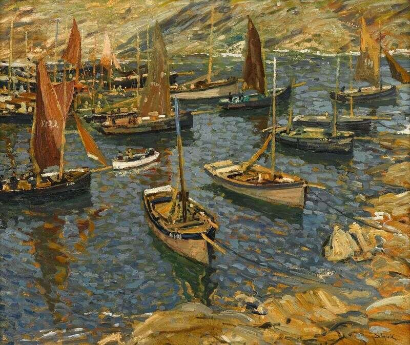 WALTER ELMER SCHOFIELD (AMERICAN 1867-1944) "THE OUTER HARBOR, POLPERRO (CORNWALL)"