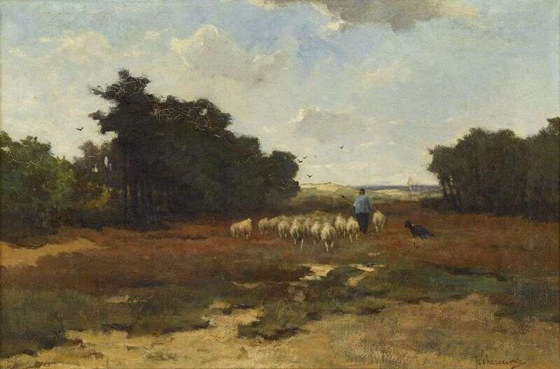 JOHANN FREDERIK CORNELIS SCHERREWITZ (DUTCH 1868-1951) HERDER WITH SHEEP