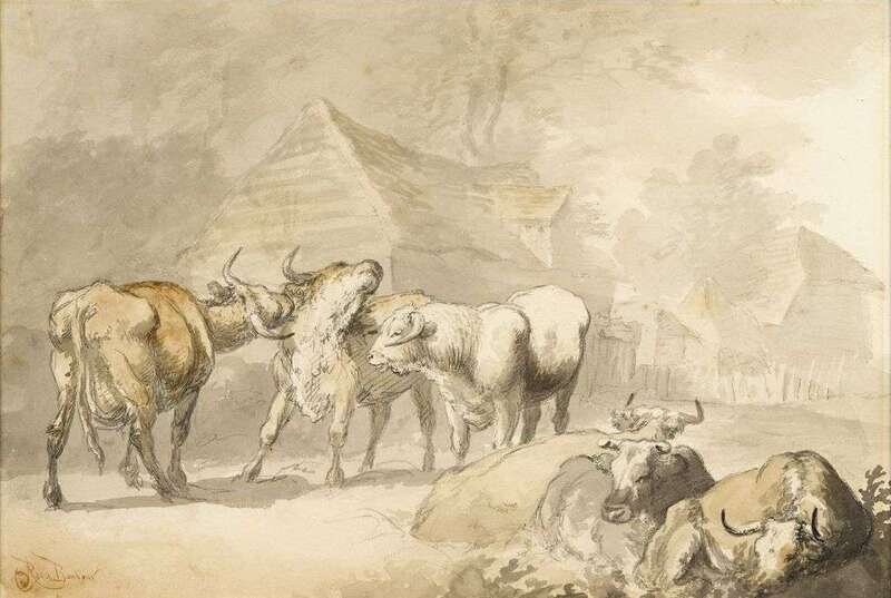 ROSA BONHEUR (FRENCH 1822-1899) CATTLE BY A HOMESTEAD