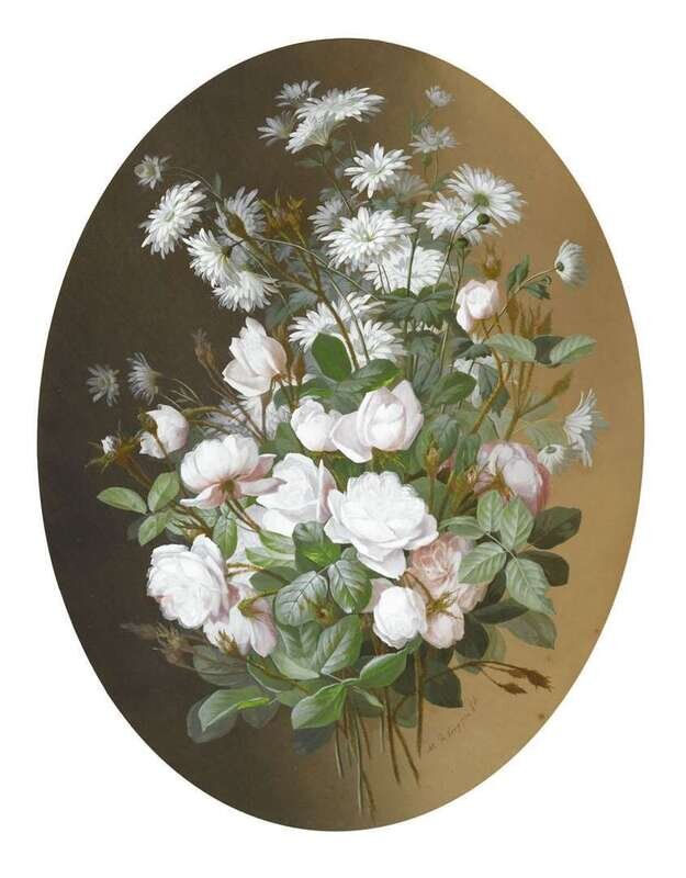 RAOUL MAUCHERAT DE LONGPRE (FRENCH 1855-1911) WHITE ROSES AND DAISIES