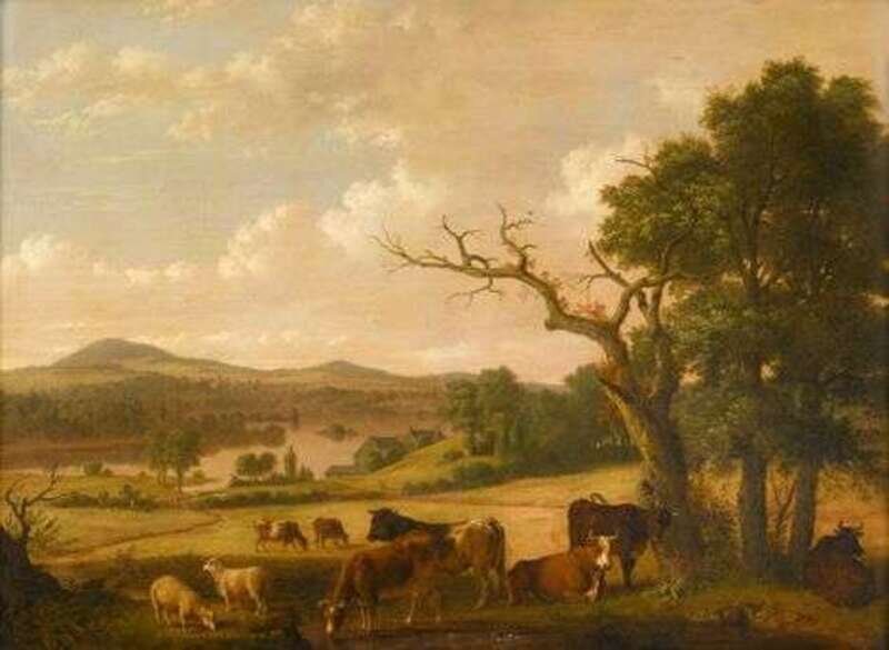 THOMAS HEWES HINCKLEY (AMERICAN 1813-1896) "LANDSCAPE FROM THE ARTIST'S HOUSE NEAR MILTON, MASSACHUSETTS"