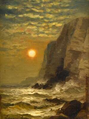 EDWARD MORAN (AMERICAN 1829-1901) SUNSET BY THE CLIFFS