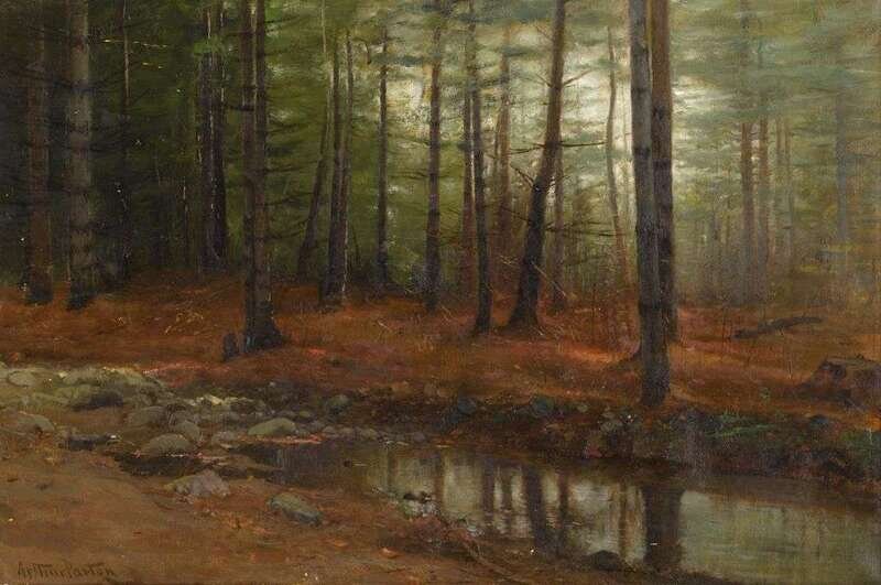 ARTHUR PARTON (AMERICAN 1842-1914) A WOODLAND STREAM AT DUSK