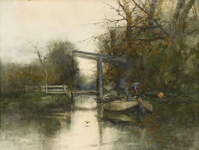 CHARLES PAUL GRUPPE (AMERICAN 1860-1940) GATHERING TWIGS