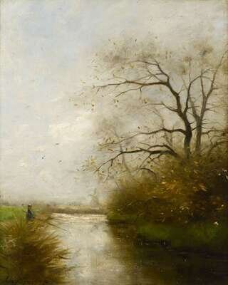 CHARLES PAUL GRUPPE (AMERICAN 1860-1940) FIGURE ALONG CANAL