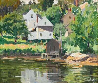 GEORGE OBERTEUFFER (AMERICAN 1878-1949) BOAT HOUSE, BOOTHBAY HARBOR
