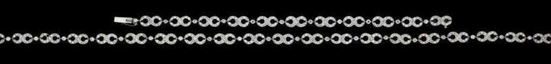 Unusual delicate figure 8 form links displaying pave set diamonds, displaying French hallmarkings.