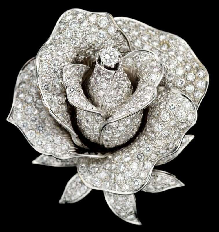 Platinum and diamond rose blossom brooch, Sabbadini italian