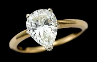 Pear shaped solitaire diamond ring, set with a single 1.6 carat diamond approximately.