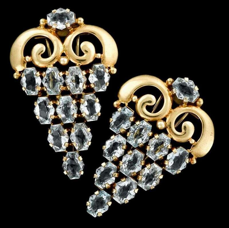 14 karat rose gold and aquamarine double clips, Cartier 1940s