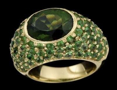 14 karat yellow gold demantoid and tourmaline ring