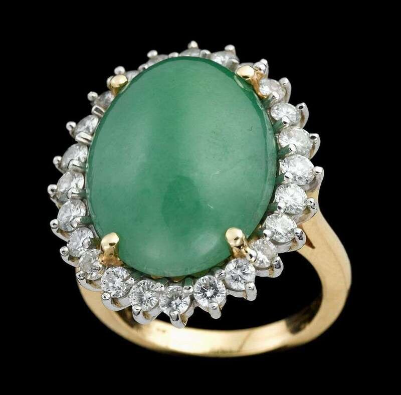 18 karat yellow gold jadeite and diamond dinner ring mid 20th century
