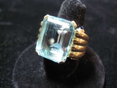18 karat yellow gold and aquamarine dinner ring contemporary