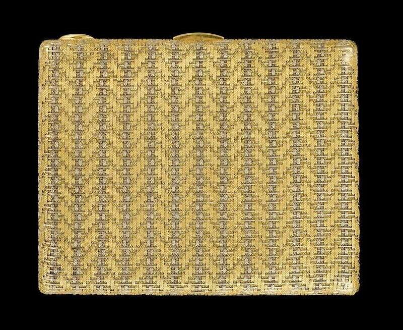 Features push clasp closure, and is accompanied by the original leather carrying case.