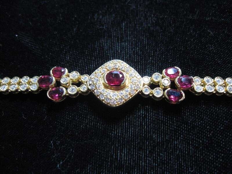 18 karat yellow gold ruby and diamond bracelet, Baily Banks and Biddle contemporary