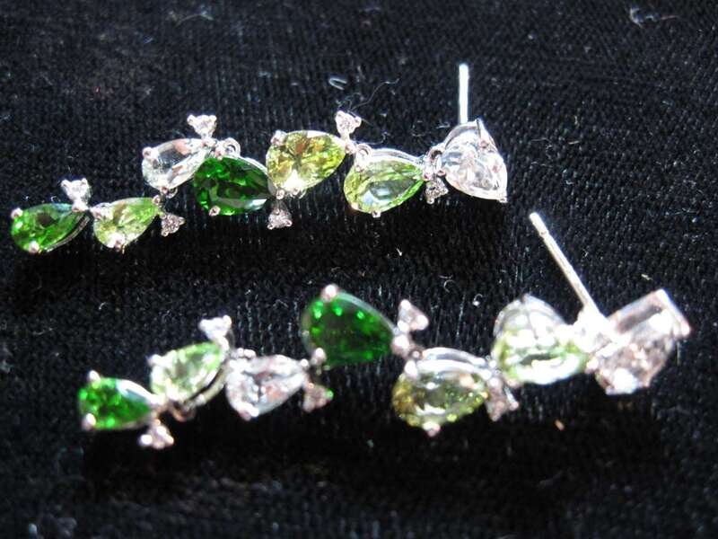 Unusual tsavorite garnet and peridot drop pendant earrings