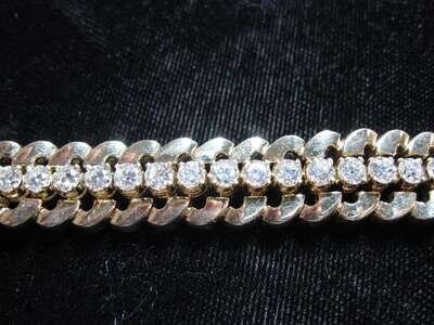 Forty-five circular cut diamonds prong set on traditional tennis bracelet form in 14 karat flexible custom made 'jacket' that can be removed. Total diamonds weight approximately 5 carats.