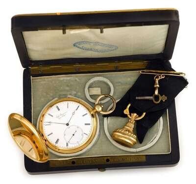 18 karat yellow gold hunting cased pocket watch, Jules Jurgensen