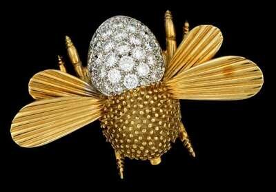 18 karat yellow gold and diamond bee brooch, Turi