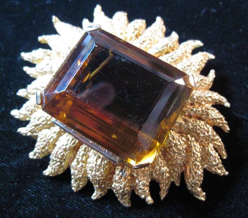18 karat yellow gold citrine and diamond sunburst brooch