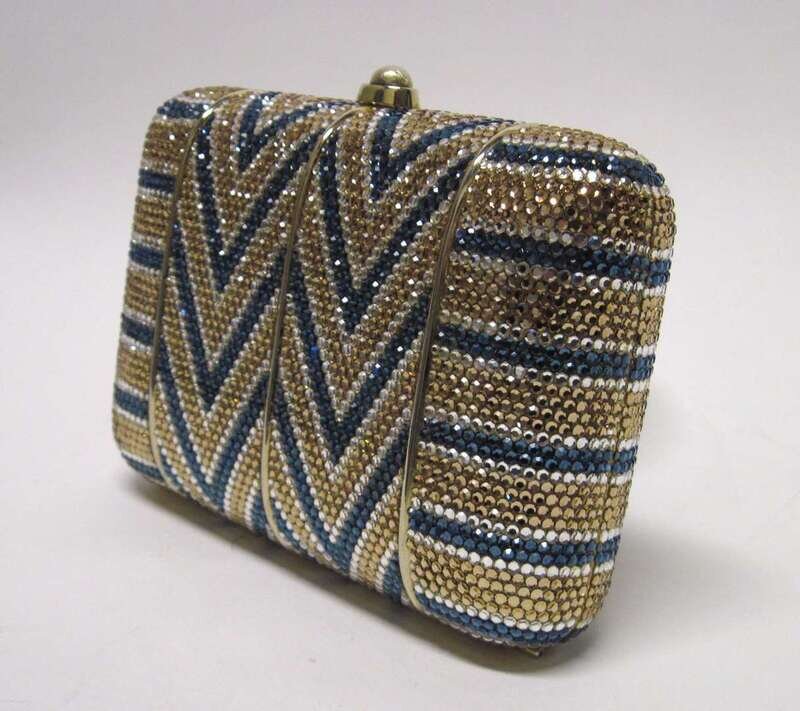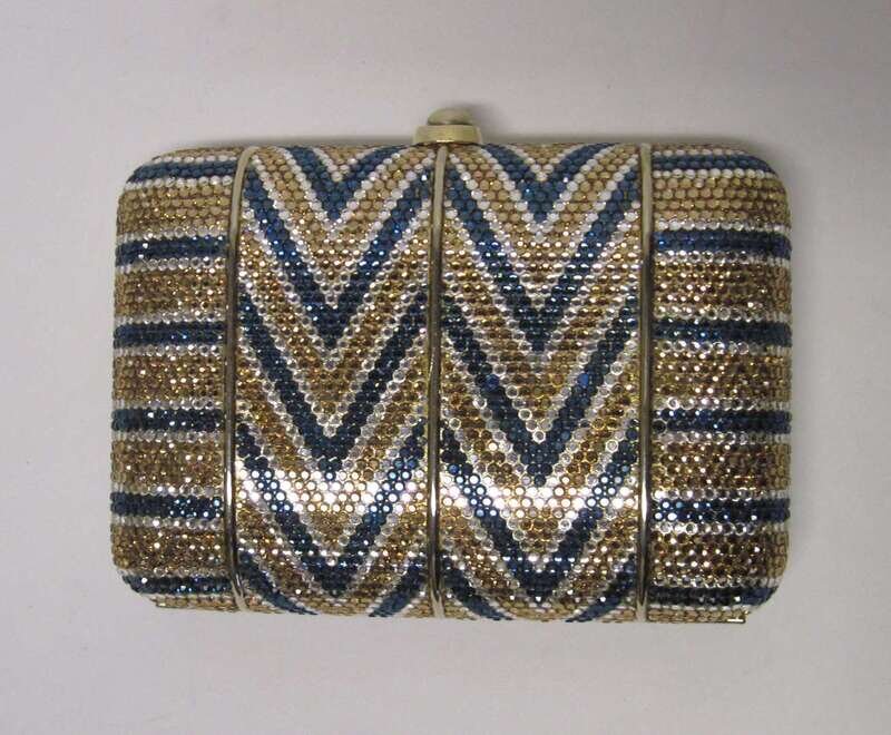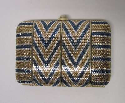 Abstract chevron design, in blue, silver and gold tones. Accompanied by original dust bag and accessories.
