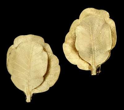 18 karat yellow gold leaf earrings