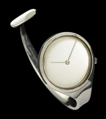 Cuff form bracelet with number-less dial wristwatch Signed by maker 'Denmark 226'.