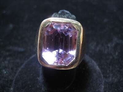 Large step cut kunzite bezel set in bombe setting.