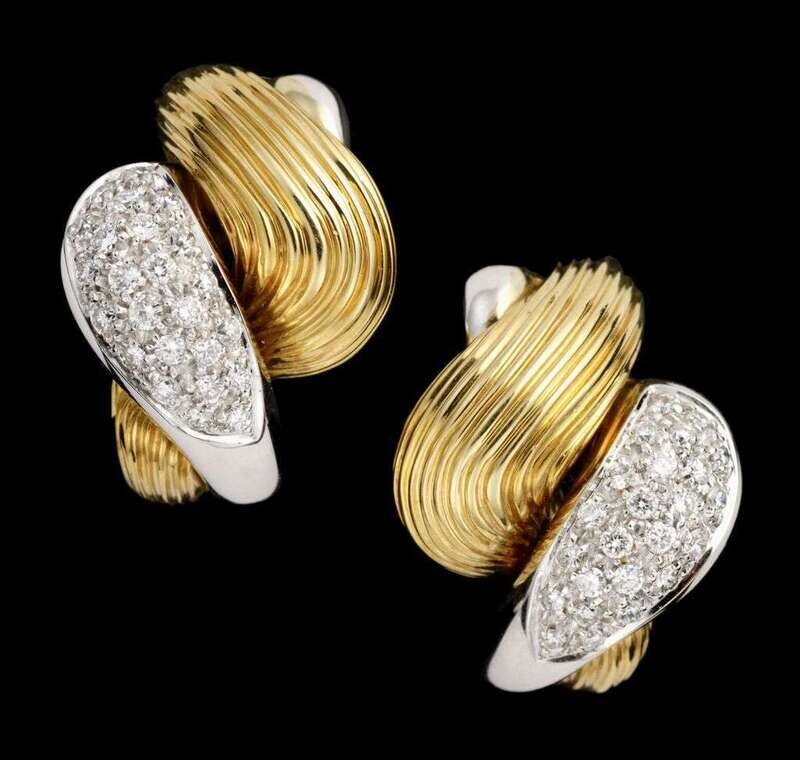 18 karat yellow and white gold diamond earrings retailed by je caldwell