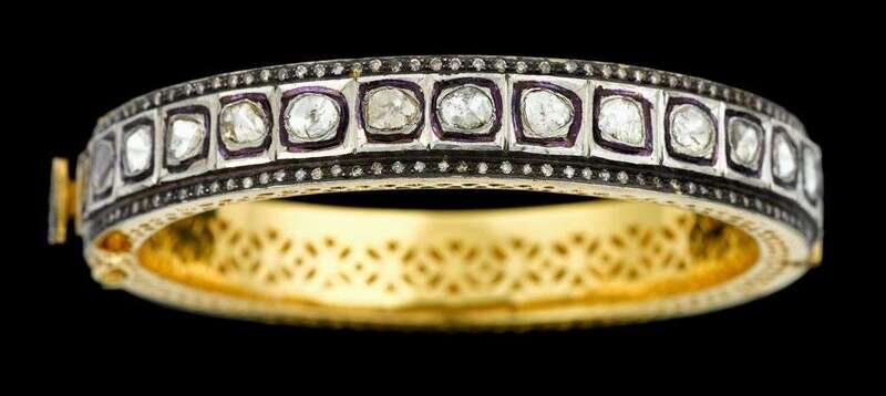 Bangle set with flat rose cut diamonds.