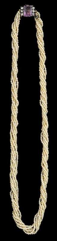 Natural seed pearl twist-rope necklace, clasp displays French hallmarks.