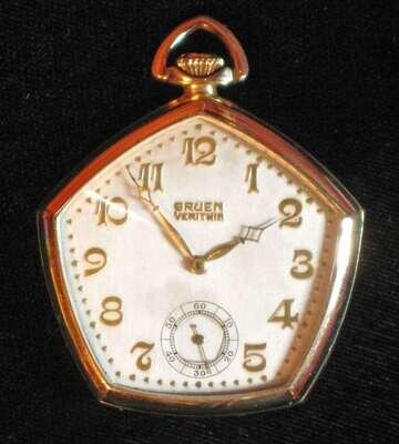 14 karat yellow gold pentagonal open face pocket watch Gruen, 20th century