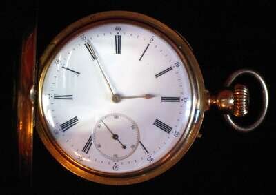 French 18 karat yellow gold and enamel hunting case pocket watch t. convreux, paris, late 19th century