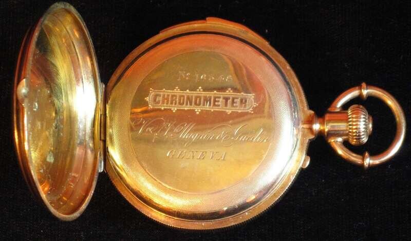 English 18 karat yellow gold minute repearing open face pocket watch j.s.magnin, london, third quarter of the 19th century