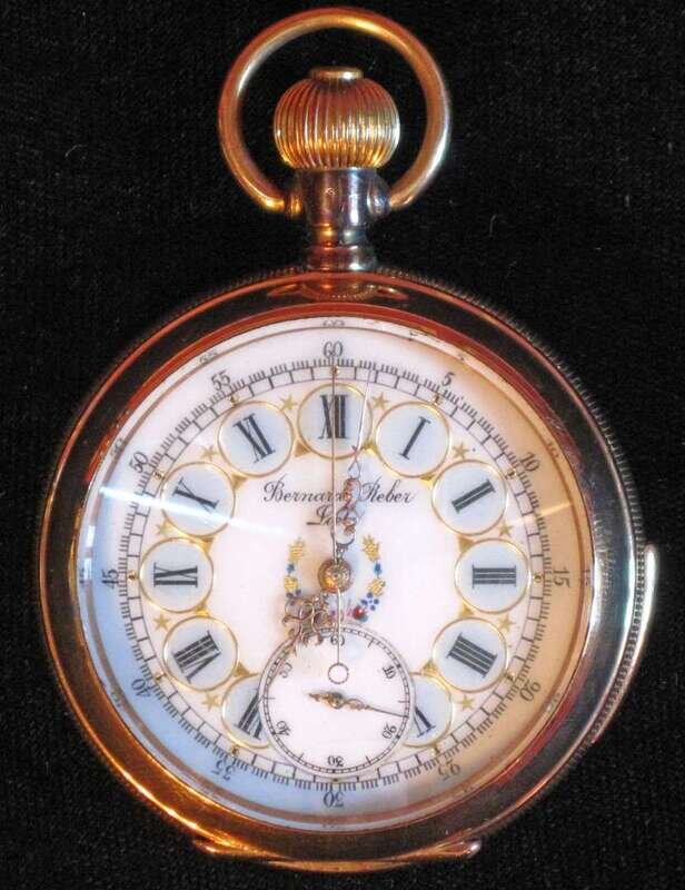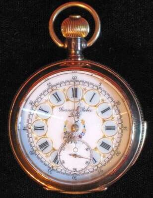 French 14 karat yellow gold repeating open face pocket watch bernard reisler, late 19th/ early 20th century