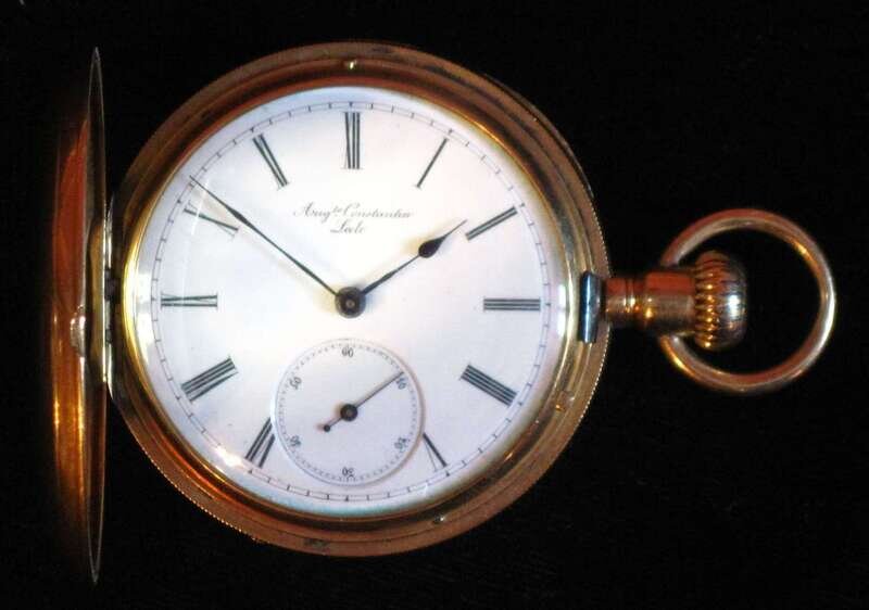 Swiss 18 karat yellow gold hunting case pocket watch aust. constantin, late 19th century
