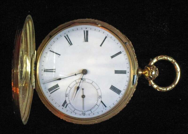 18 karat yellow gold hunting case pocket watch swiss, mid 19th century