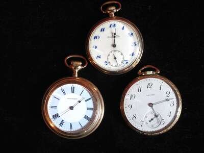 Three yellow gold filled open face pocket watches 20th century