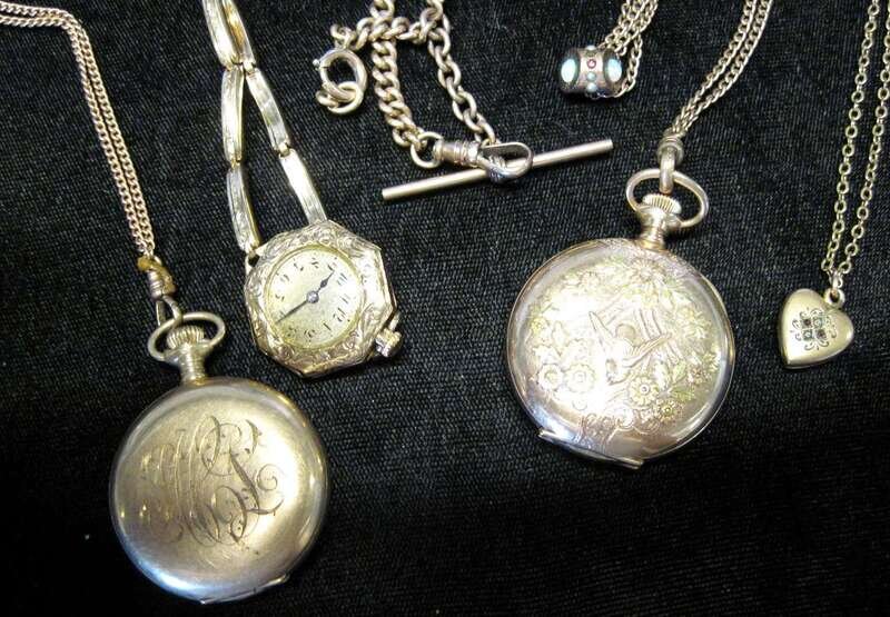 Two gold filled pocket watches, one Roman numeral and dash dial Elgin and one Arabic numeral and dash dial Waltham both hunting cased together with a 14 karat yellow gold wristwatch with Arabic numeral and dash dial.