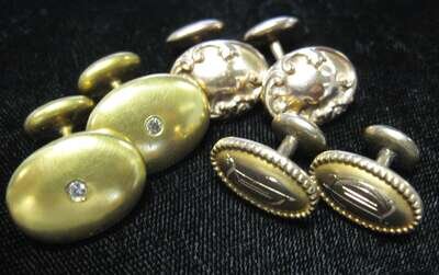 Three pair yellow gold filled cufflinks