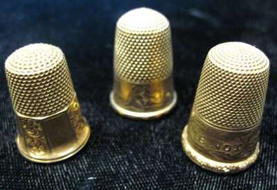 Group of three yellow gold thimbles