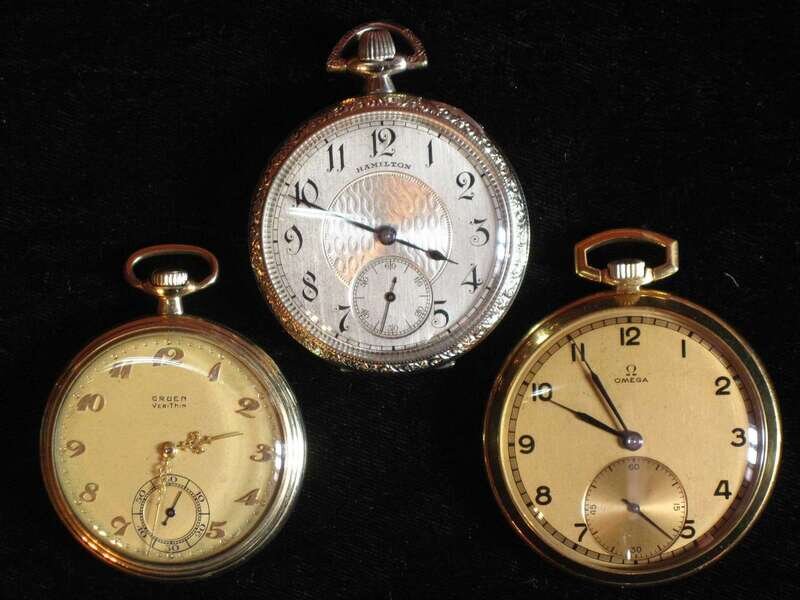 Omega, black on gold Arabic numeral dial, with subsidiary seconds dial, No.10069462, Gruen, raised yellow gold on gold Arabic numeral dial with subsidiary seconds dial, No. 518298, and Hamilton, ( white gold filled) black on silvered Arabic numeral dial with subsidiary seconds dial, No. 1953459.