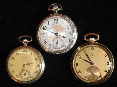Three yellow and white gold filled case open face pocket watches 20th century