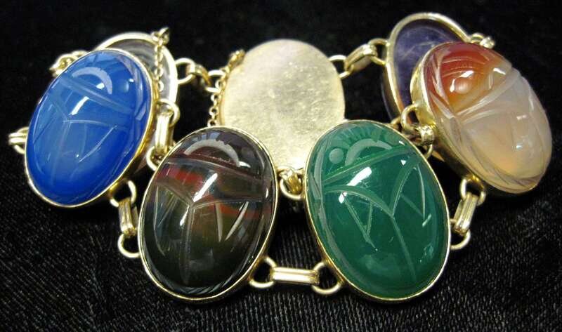 14 karat yellow gold and multi stone scarab bracelet