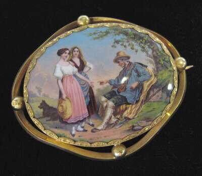 Yellow gold filled enameled tin brooch