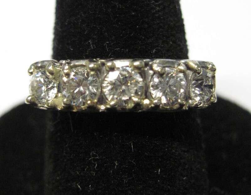 Set with five round cut diamonds, each approximately .20 carats.