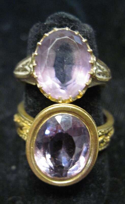 Two yellow gold and amethyst rings