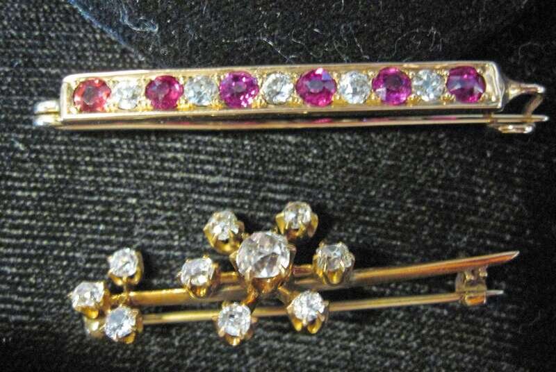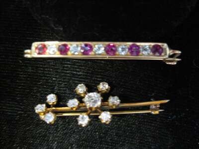 Ruby and diamond bar pin, with a diamond set starburst pin.